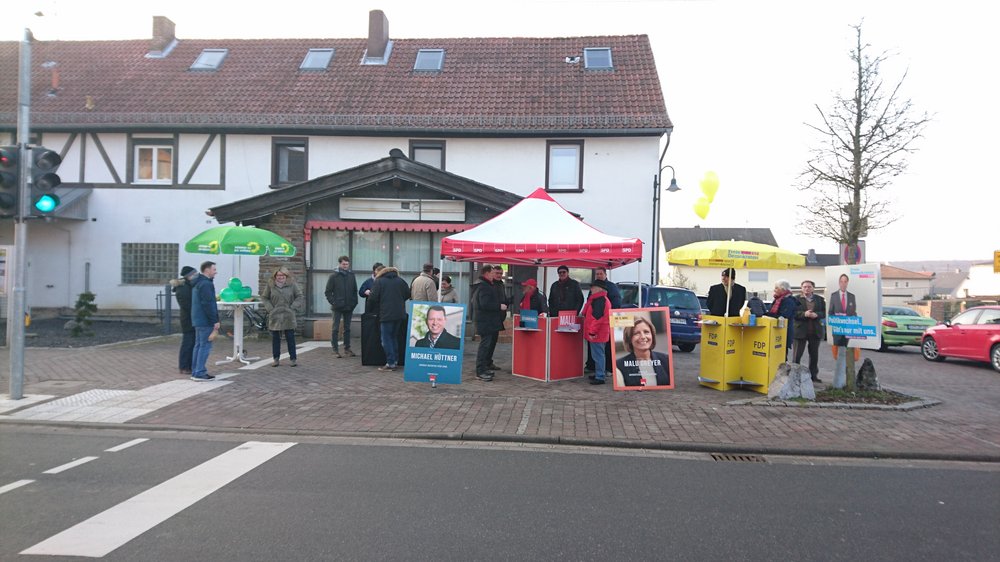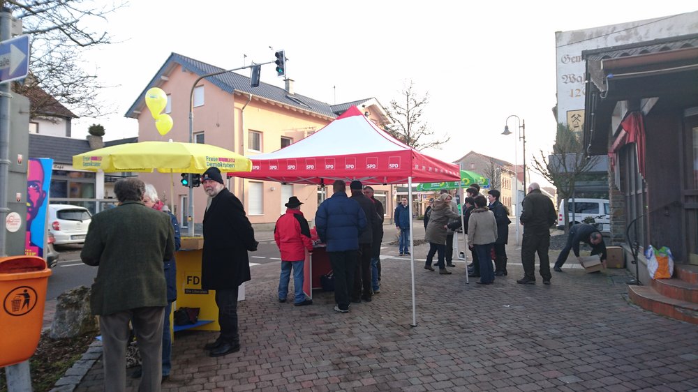 Einen Tag vorm Wahlsonntag war nochmal ein Großaufgebot von Informationsständen in Waldalgesheim.